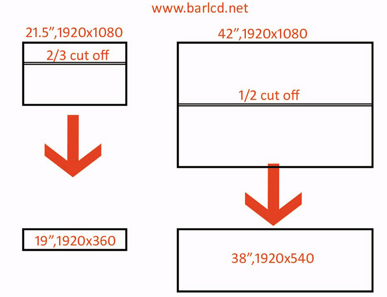 Ultra wide stretched LCD technical 1/3 cut of the original LCD monitor Ultra Wide Stretch LCD Display by comparing the unit with a n...